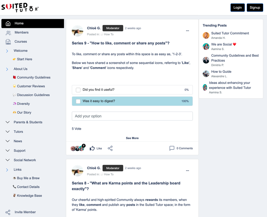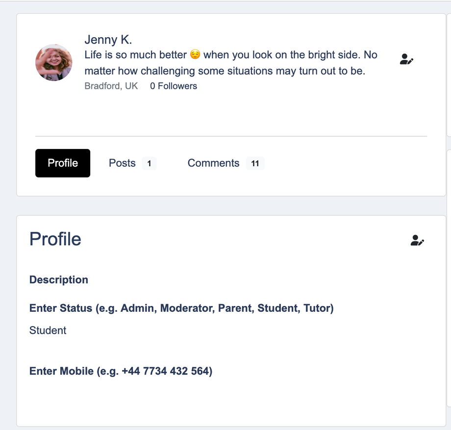 - Your status (e.g. Student, Admin, Moderator, Parent, or Tutor)