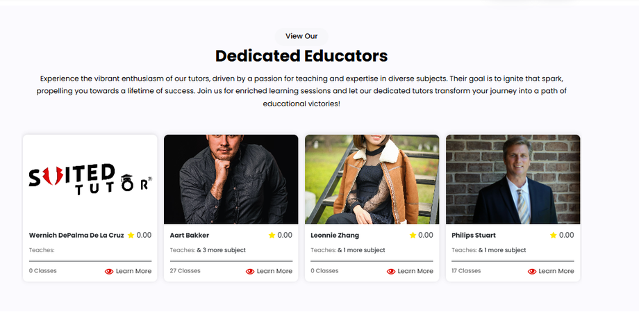 Here’s a preview of how your profile could be showcased on Suited Tutor’s homepage (screenshot enclosed below). Your face. Your story.