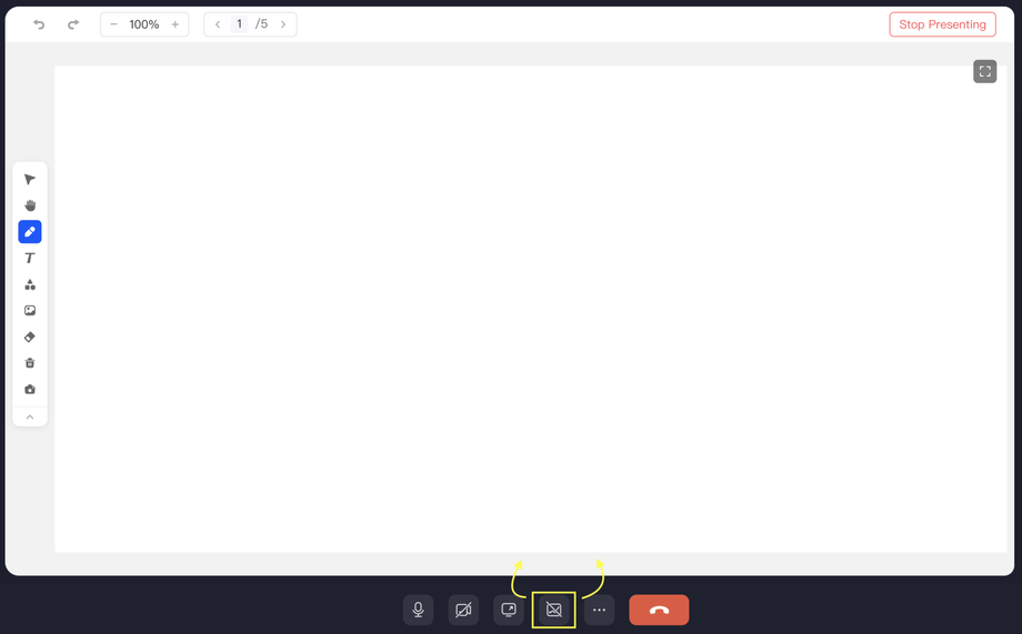 - Camera: Similarly, click the "camera" icon to turn your video on or off as needed.