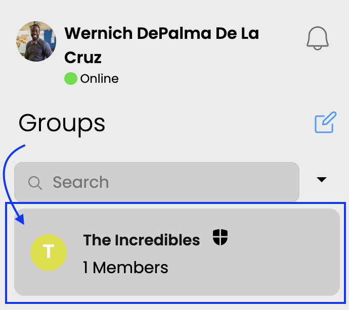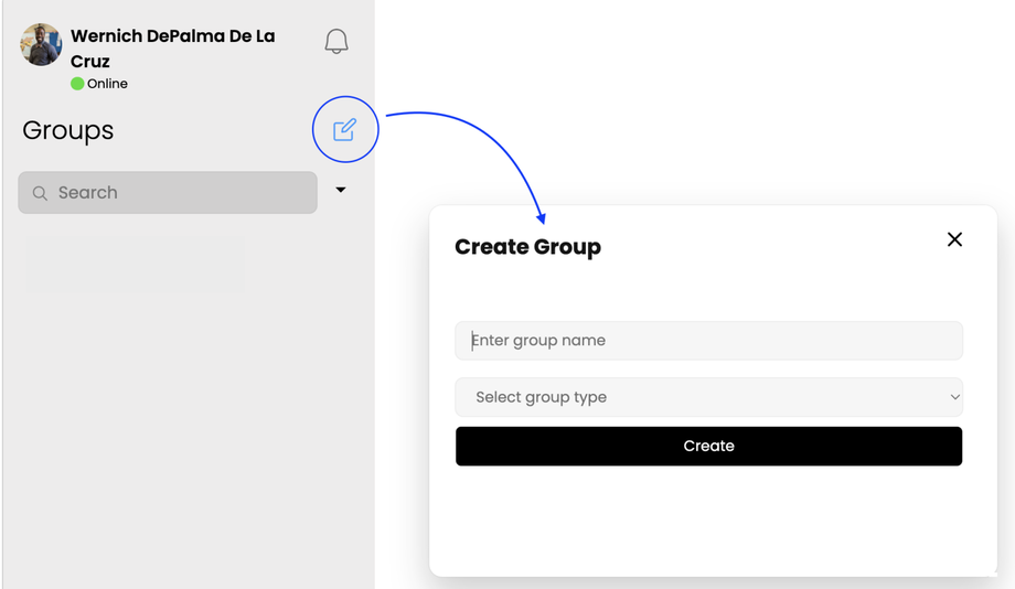 - Step 2: From the 'pencil' icon from your profile - located below the 'bell' icon, please enter the group name