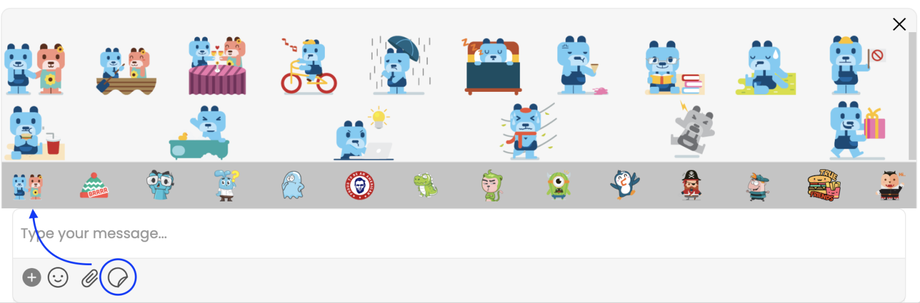 - Step 3: Next to the 'paperclip' icon, (from the right-hand side), click on the "stickers" icon and select the 'sticker' you would like to send.